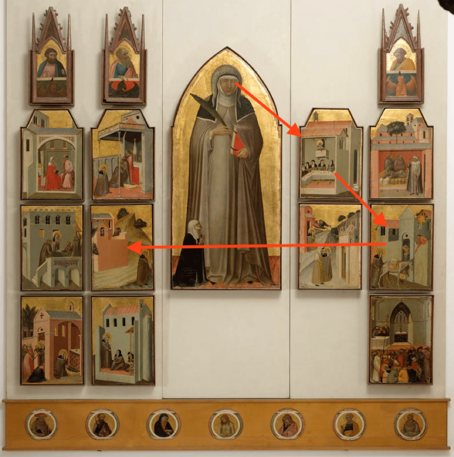 In mentioning The Death of General Wolfe, I don’t mean to conflate its purpose with the Uffizi’s. I take the Uffizi’s goal to convey the experience of the art, while The Myth of North America, in One Painting by Jason Farago which brilliantly addresses the art historical/cultural references in Benjamin West’s 1770 painting “The Death of General Wolfe,”